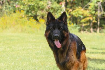 German Shepherds from West Germany are known for their beautiful red & black colors. These dogs are also clear in the head, eager to learn, work and play. They have the best temperament of any of the German Shepherd breeds. This is the breed of German Shepherd you see in the World renowned Sieger dog shows in Germany and across the globe. Once you own a West German show line, shepherd, you will never look back at your decision and regret it.
